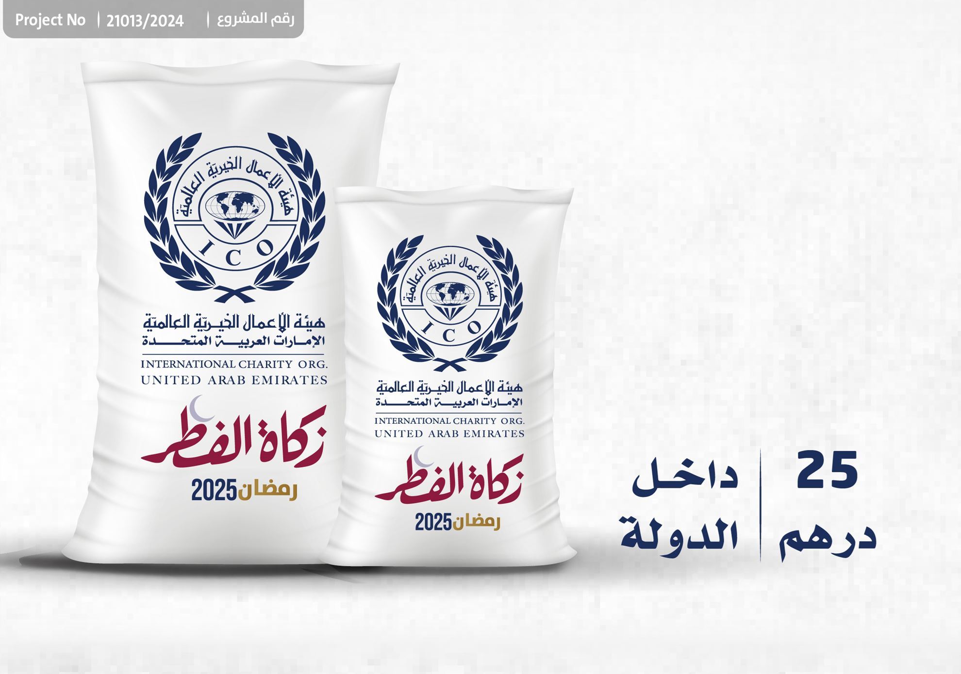 بادر لإخراج زكاة الفطر، ونحن في هيئة الأعمال الخيريّة العالميّة نُخرجها عيناً (أرز) داخل الدولة, وسيتم إيصالها للفئات المستحقة والأشد احتياجاً.داخل الدولة: 25 درهم للفرد