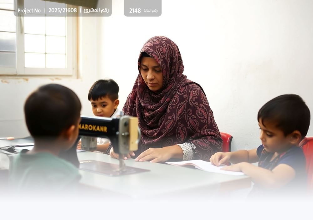 أرملة تعمل في الخياطة لتعيل أيتامها الصغار على مقاعد الدراسة، وتواجه صعوبة في تغطية التكاليف التعليميّة لهم، دخل الأسرة غير ثابت وهم بأمسِّ الحاجة للمساعدة.
