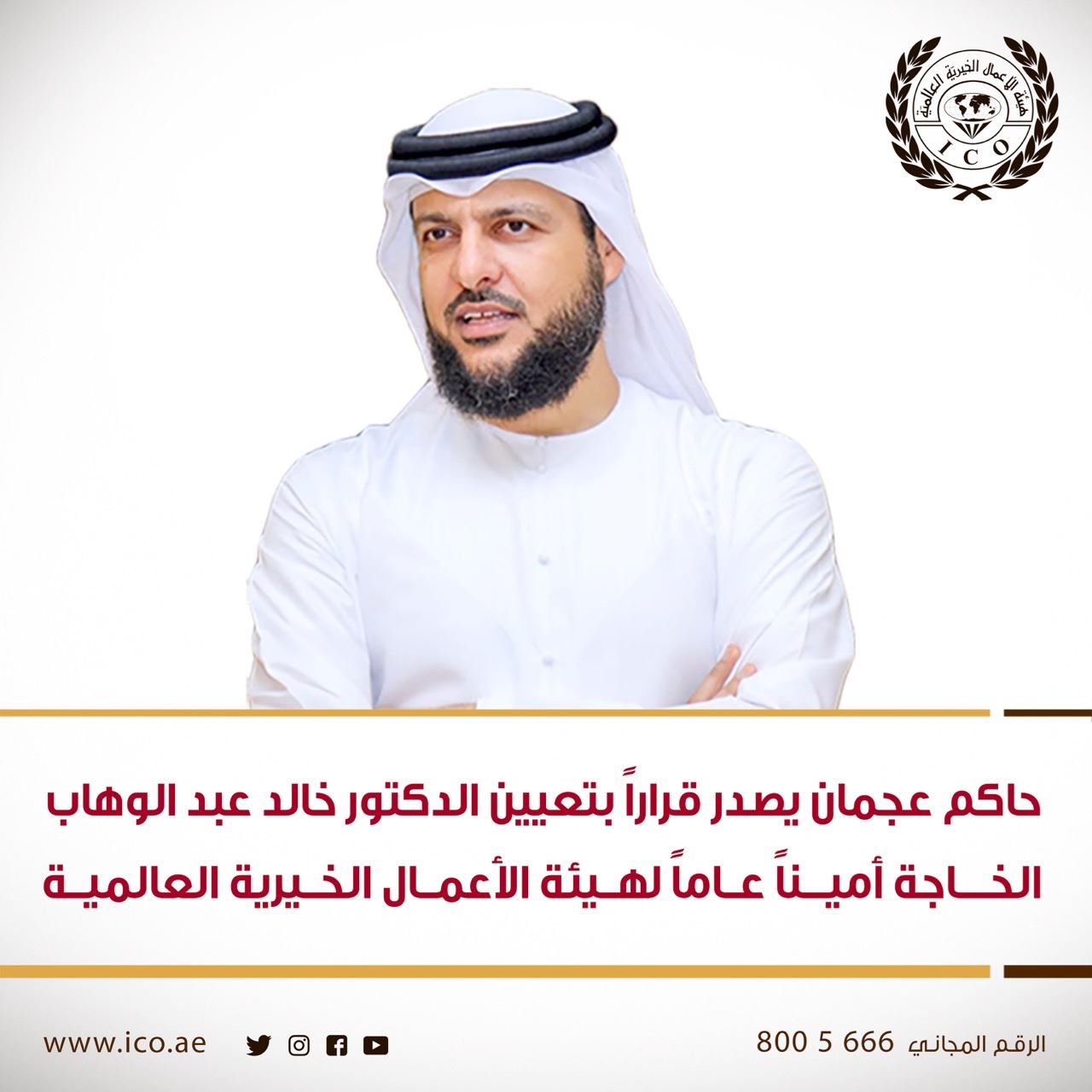 أصدر صاحب السمو الشيخ حميد بن راشد النعيمي عضو المجلس الأعلى حاكم عجمان قرارا أميريا بتعيين خالد عبد الوهاب الخاجة أمينا عاما لهيئة الأعمال الخيرية العالمية في عجمان.