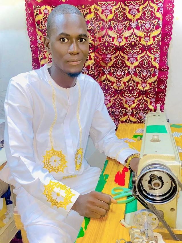 With time, his skills improved and thanks to Allah and then the support of the Organization, he was able to buy a manual sewing machine and some fabrics from the local market, to start sewing clothes for his family and neighbors, then he rented a shop near the neighborhood to sew women's and children's clothes.