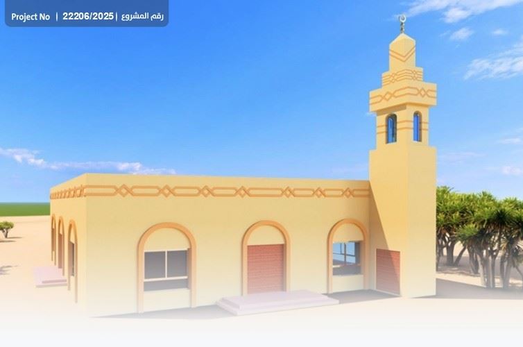Building a mosque with an area of 100 square meters that can accommodate 150 worshipers, constructed with a concrete roof with a minaret, ablution area, and 2 bathrooms, in addition to carpeting the mosque and equipping it with a sound system.