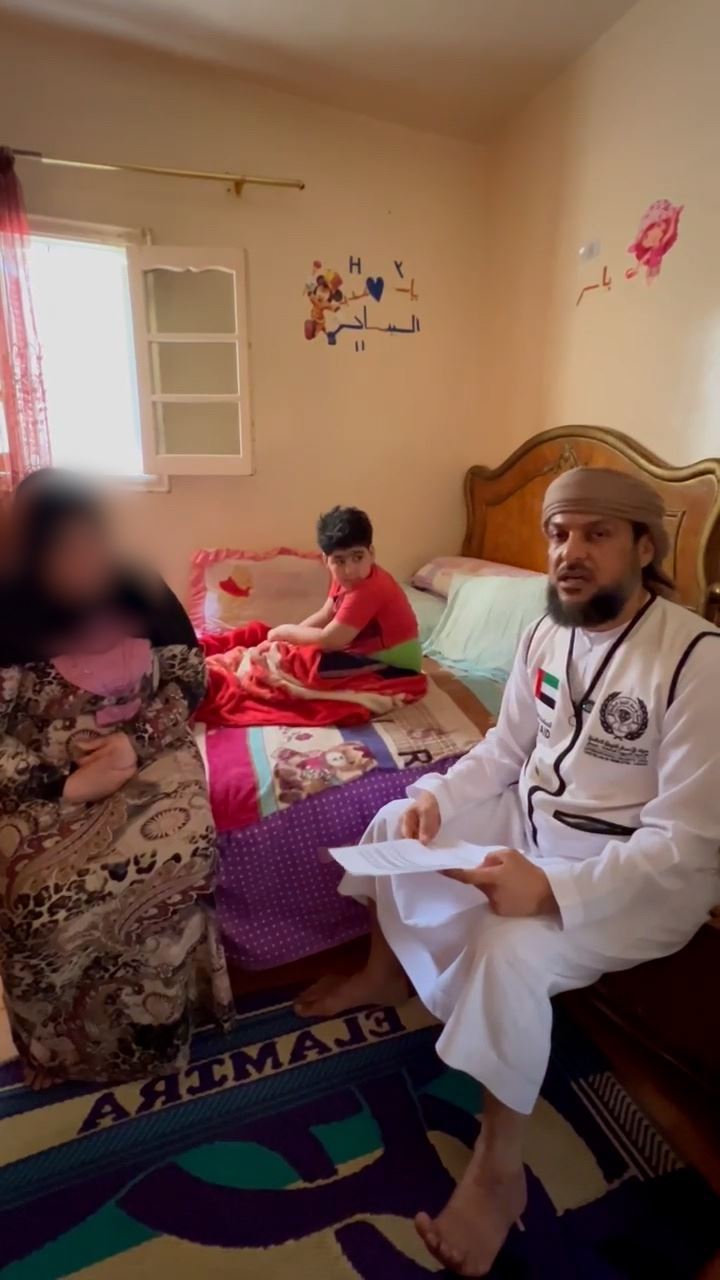 A mother of four orphans from Egypt, without a source of income. Her son was involved in a fall from the fourth tire, and he suffered atrophy in the arm and lost the ability to speak. They provided them with monthly treatment and rent for the house.
