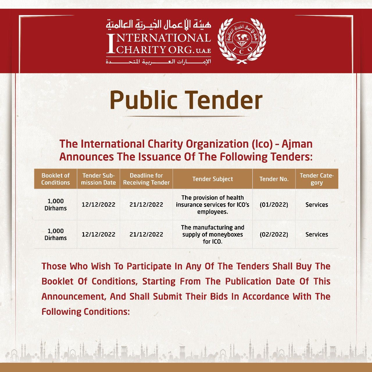 The International Charity Organization (ICO) hereby floats the following tender: those who are interested to participate shall read the following terms and conditions and submit their bids.
